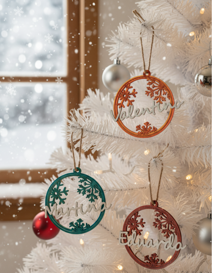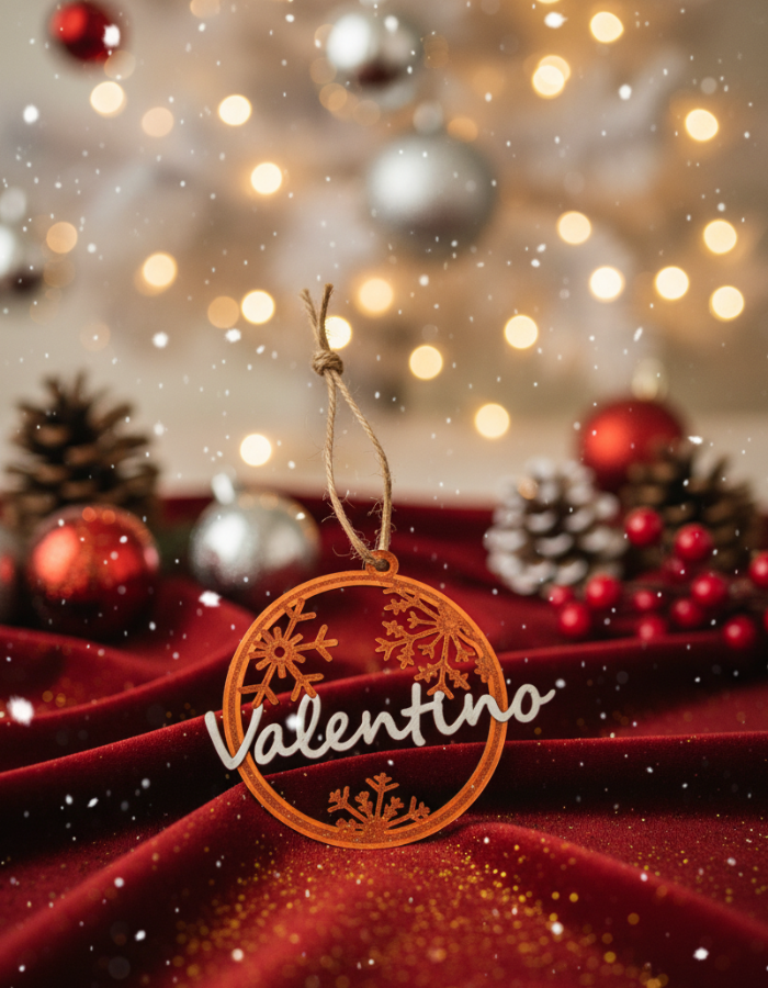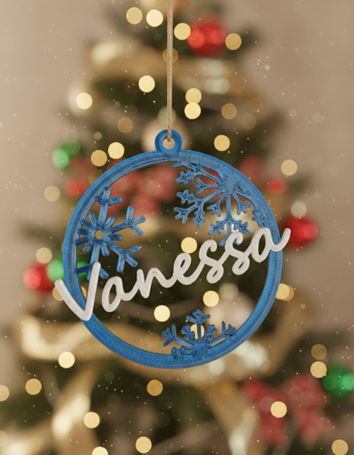 Añade un toque único y personal a tu árbol esta Navidad con nuestra Bola de Navidad Color. Fabricada con impresión 3D, este adorno presenta un hermoso diseño de copos de nieve que enmarca el nombre que elijas. ¡Es el regalo perfecto o un detalle especial para tu propia decoración!